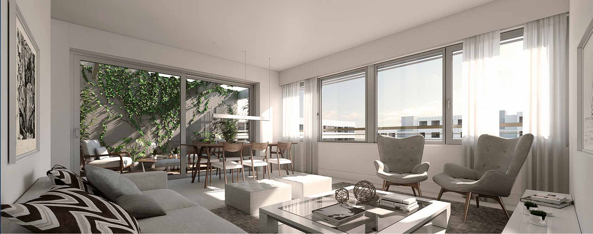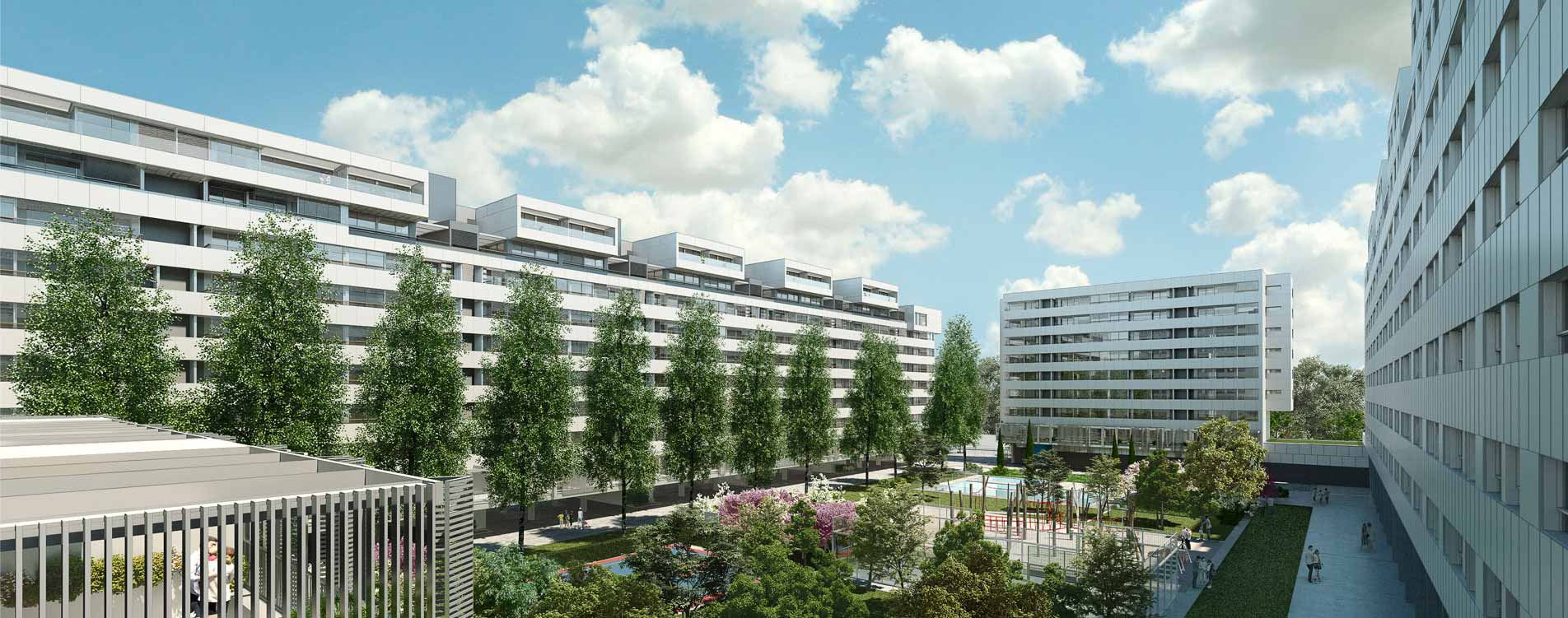 Valdebebas 120 es un proyecto de 247 viviendas de 2, 3 y 4 dormitorios, con trasteros y plazas de garaje, que además cuenta con locales comerciales y un edificio de uso terciario. Destaca su gran calidad arquitectónica, además de la eficiencia térmica y acústica. Al ser un proyecto de parcela completa, dispondrá de amplias zonas comunes para instalar jardines, piscina, áreas de juegos….